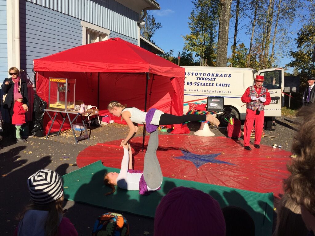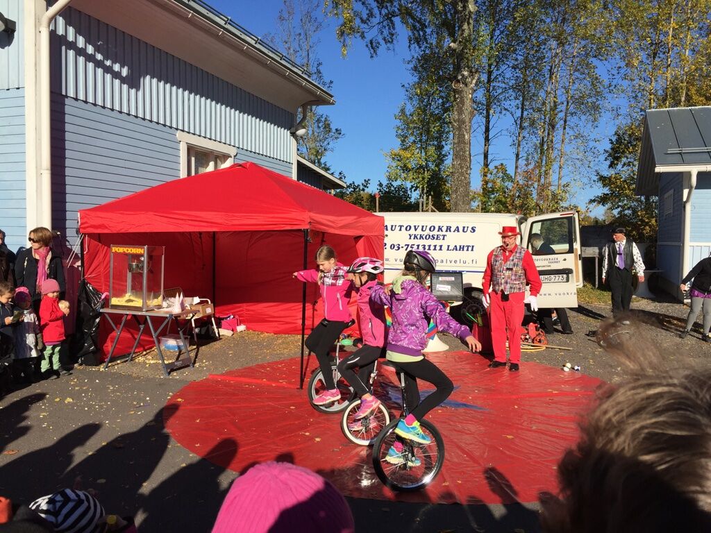 Lauantai 3.10. oli kiireinen päivä. Aamu alkoi aikaisin kun Nuokun Sirkuksen esiintyjät käänsivät auton nokan kohti Villähdettä! Vierailimme nimittäin MLL:n Syysriehassa. Tämä keikka oli monille nuorille se ihan ensimmäinen esiintymiskerta. Onneksi oli kaunis päivä sillä esiintyminen tapahtui ulkotiloissa. Alla vähän kuvia päivästä. 🙂