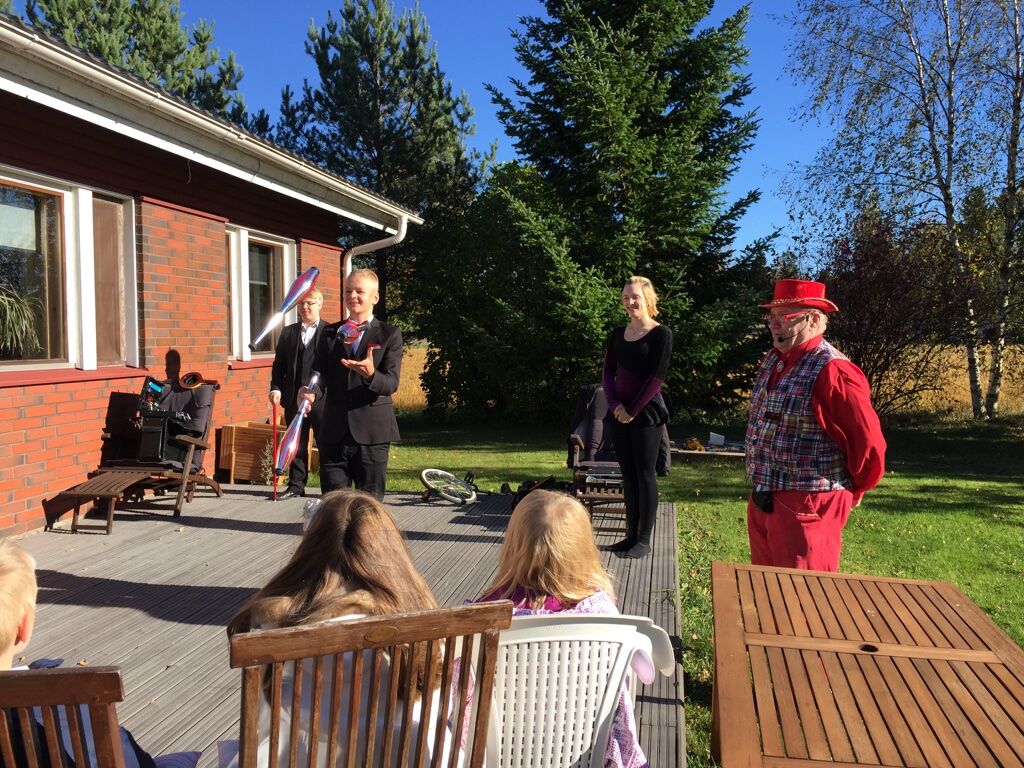 Keikan jälkeen esiintyjämme lähtivät kohti seuraavaa keikkapaikkaa jossa juhlittiinkin syntymäpäiviä! Mikäpä sopisi synttäreille paremmin kuin sirkus esitys!