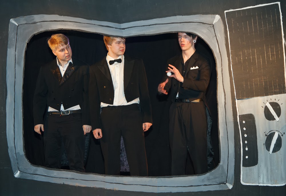 Näiden esitysten jälkeen jäljellä oli enään nykysirkus pläjäys. Nykysirkuksesta sen verran, että esitys ei oiken auennut kaikille, mutta se on osittain sen tarkoitus. Viimeisenä oli viellä loppuparaati, jossa esiinytjät kävelivät kulkueena lavalle ja kiittivät yleisöä. Lopuksi voisin viellä nostaa esille huippu tirehtöörin jota ilman esitys ei olisi ollut mitään.