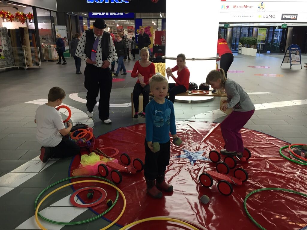 Sirkuslaiset esiintyivät lauantaina Kauppakeskus Valon valoa&voimaa tapahtumassa 15 esiintyjän voimin. Mukana oli taas niin ensikertalaisia, kuin jo kokeneita konkareita.